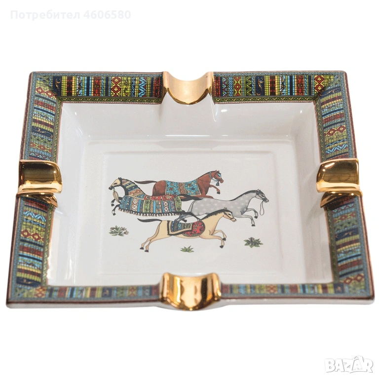 🎁 Декоративен порцеланов пепелник с коне – подарък за пушач