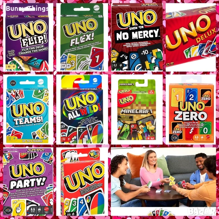 Обновената версия на UNO с новите карти - жокери, с които можете да създадете свои собствени правила & картата за смяна на ръцете!