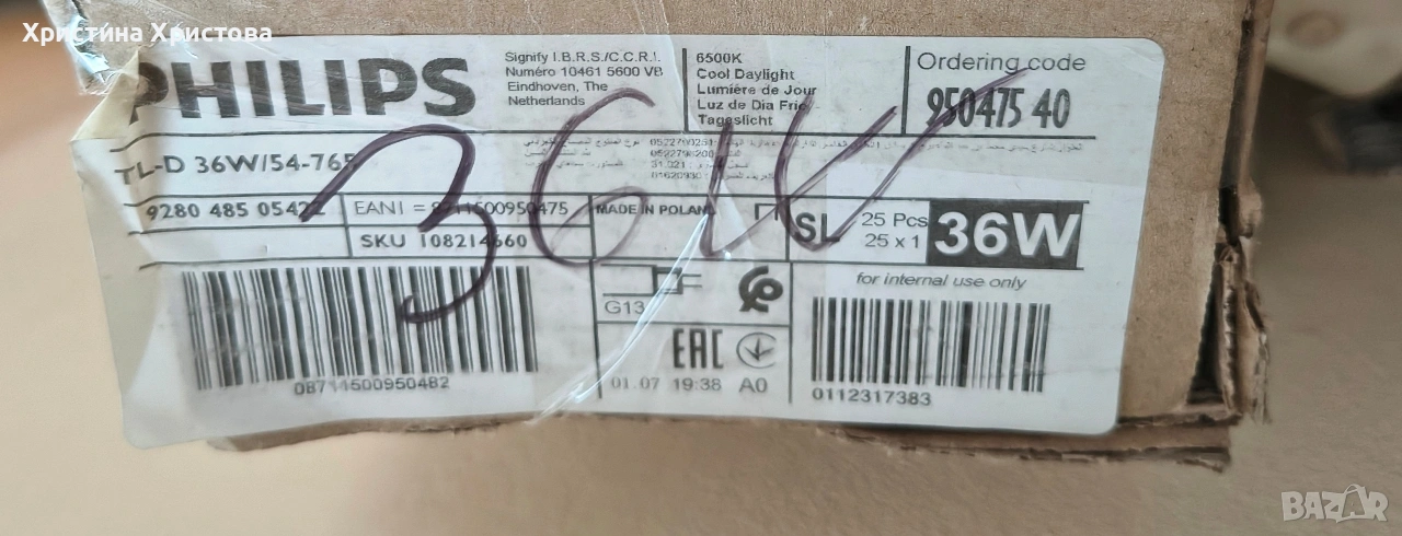 Луминисцентни тръби 36W 120 см - 1 евро/бр.