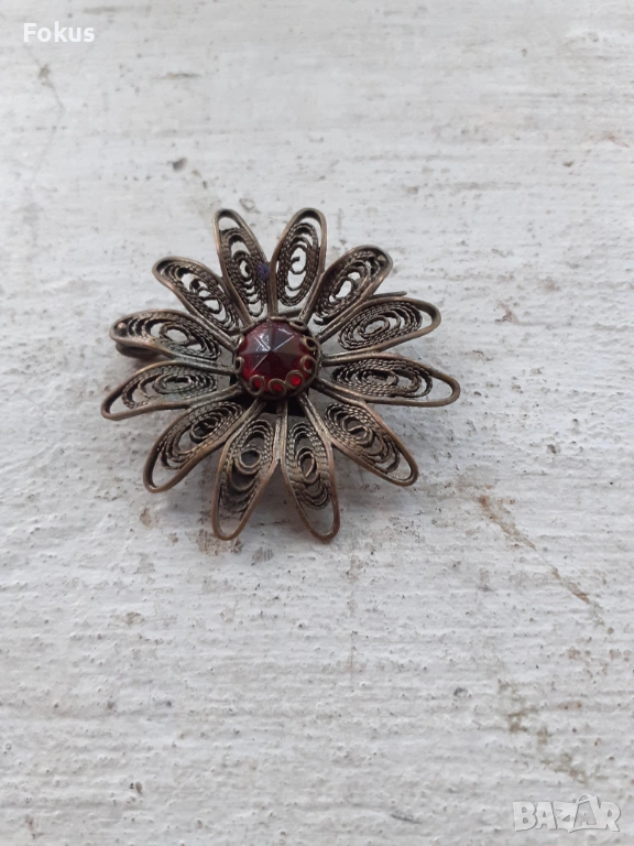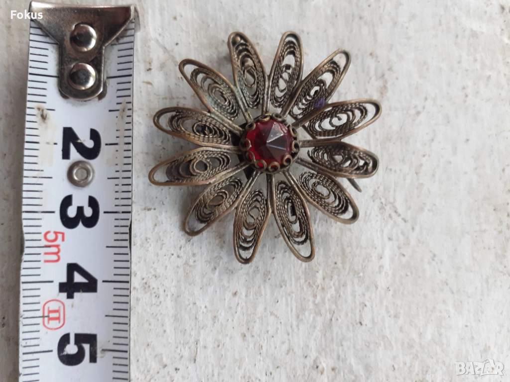 Възрожденски накит брошка филигран червено стъкло → Обява 53410163