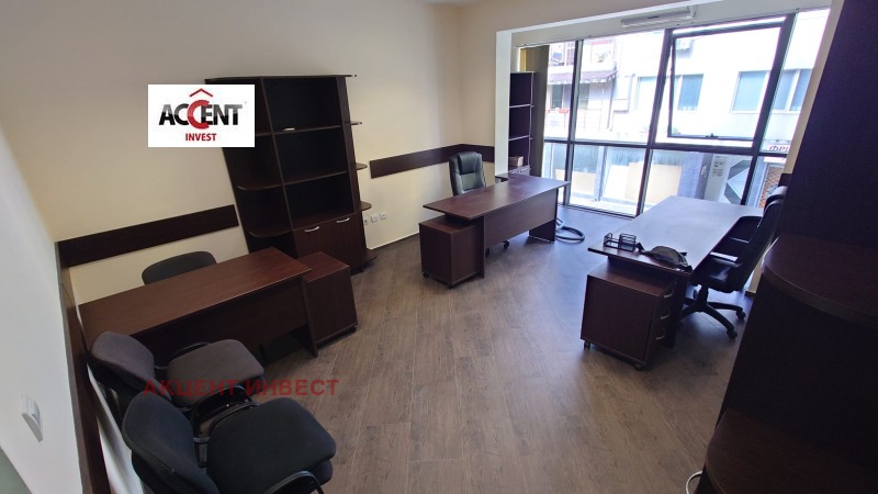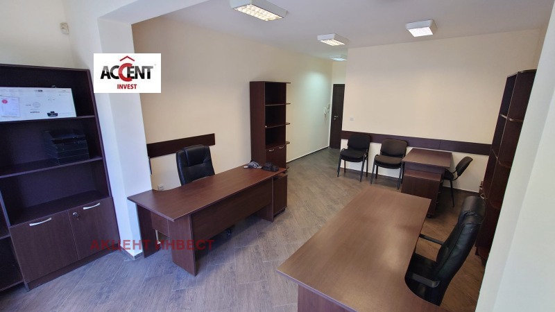 КОД 21114 'Акцент Инвест' Ви предлага офис под наем в района на 'Проектантска организация'. Имотът е с площ от 41 кв.м. и се намира на 1-ви етаж. Състои се от едно работно помещение, кухненски бокс, санитарен възел. Предлага се с обзавеждането от снимките. Собственост на физическо лице. Такса поддръжка се заплаща отделно, офисът се намира в сграда от смесен тип, като офисната част е с отделен вход. Намира се на ул. 'Родопи'. Има климатик, интернет връзка (само трябва да се сключи договор за доставка), СОТ.