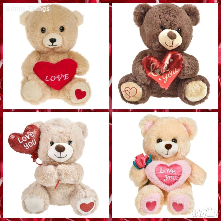 Плюшено мече със сърце "Love", различни видове/ Подарък за Свети Валентин