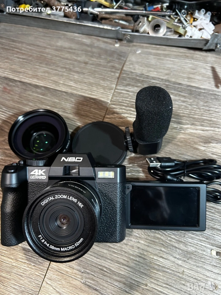 продавам 4К камера NBD в отлично състояние подходяща за Youtube влиг видео снимки и стрийминг комплекта вкючва камера NBD 4K Ultra HD външен микрифон с гъба широкоъгълен обектив USB кабел аудио кабел капачка за обектива и каишка всичко работи перфекно много запазен готов комплект за снимане