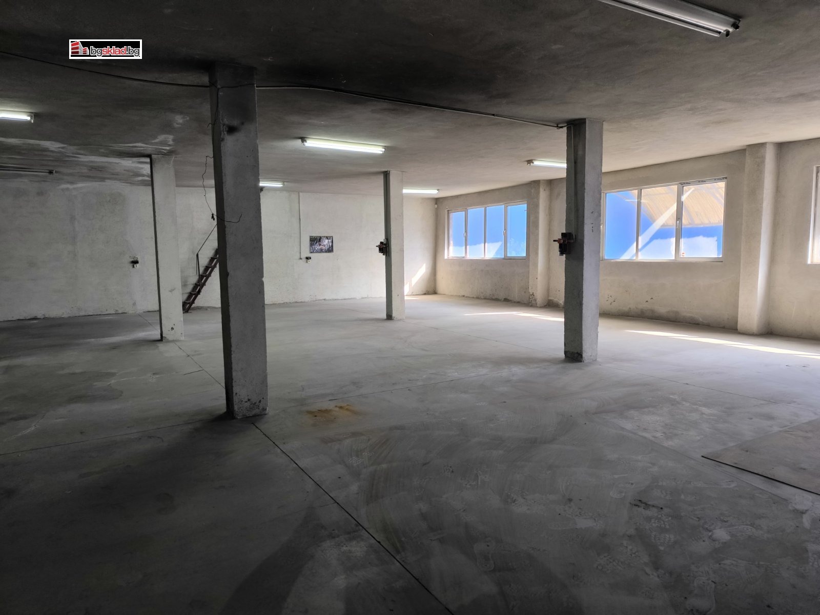 Настилката е шлайфан бетон, подходяща за индустриално натоварване.