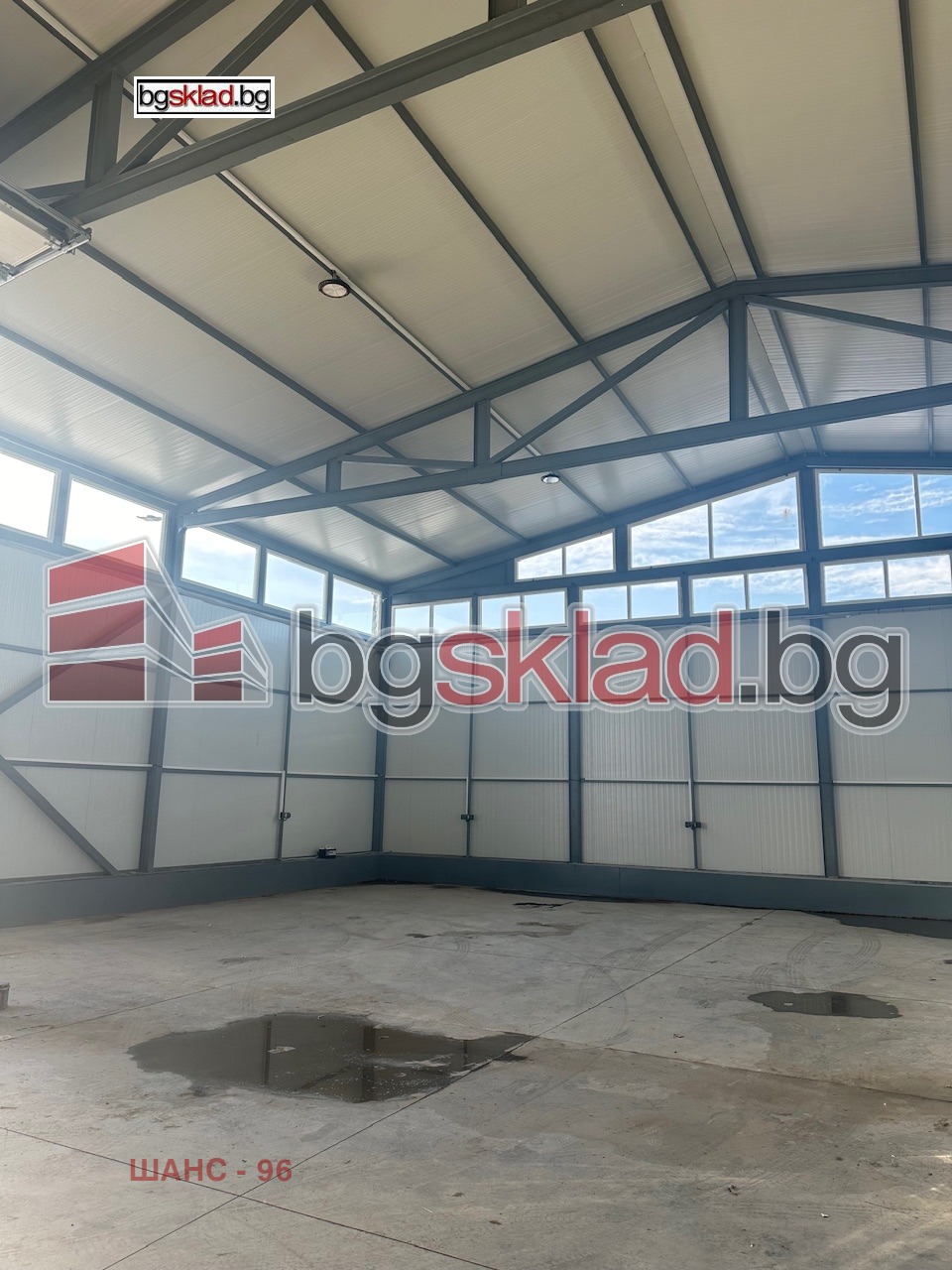 Складът се състои от: складово помещение от 800 кв.м, с работна височина 8.00 м. Подова настилка-шлайфан бетон. Достъп посредством ролетна врата с размер 6.00/6.00 м на кота 0.