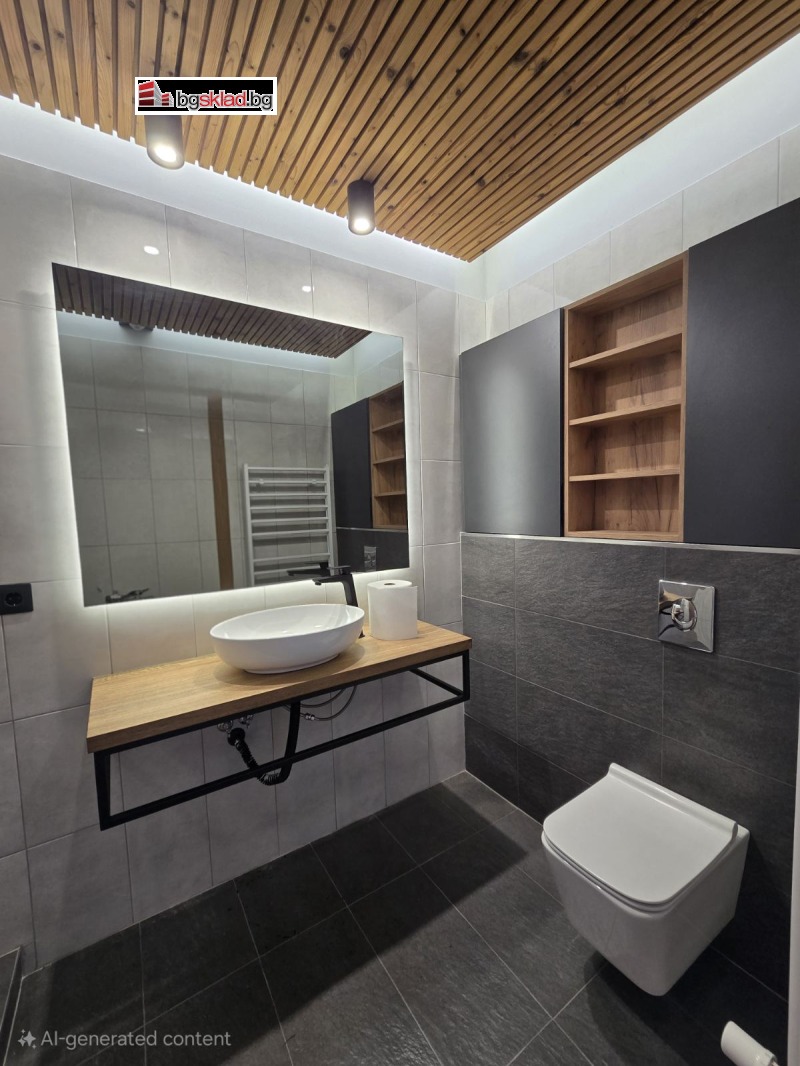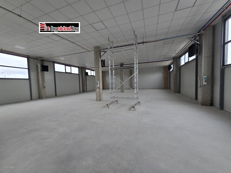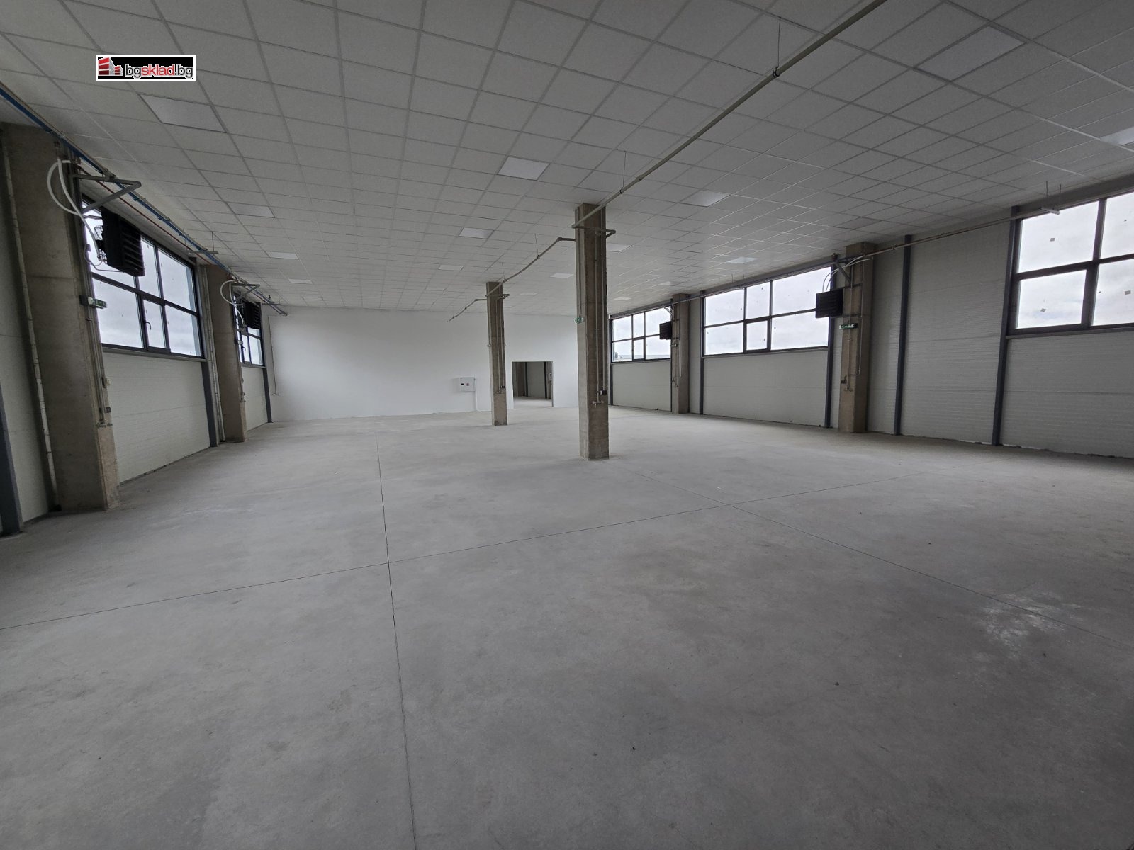 Втори етаж две производствени зали (~600 кв.м), офисна част с окабеляване за интернет, монтирани контакти и ключове Schneider, луксозни санитарни възли и просторна тераса с панорамна гледка към Витоша и Лозен планина.