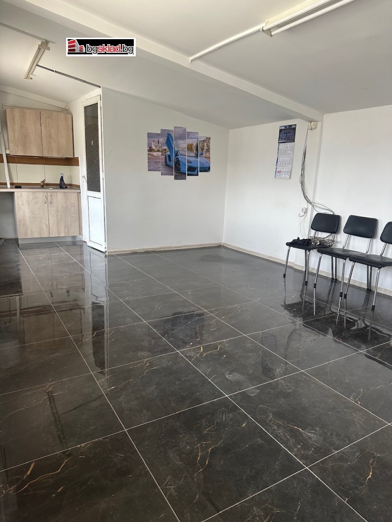 Имотът се състои от: складово помещение от 100 кв.м, с работна височина 3.00/2.00 м. Подова настилка-обикновен бетон. Достъп посредством две врати с размер 2.00/2.00 м на кота 0. До складът има изграден офис със санитарен възел и навес за шест автомобила.