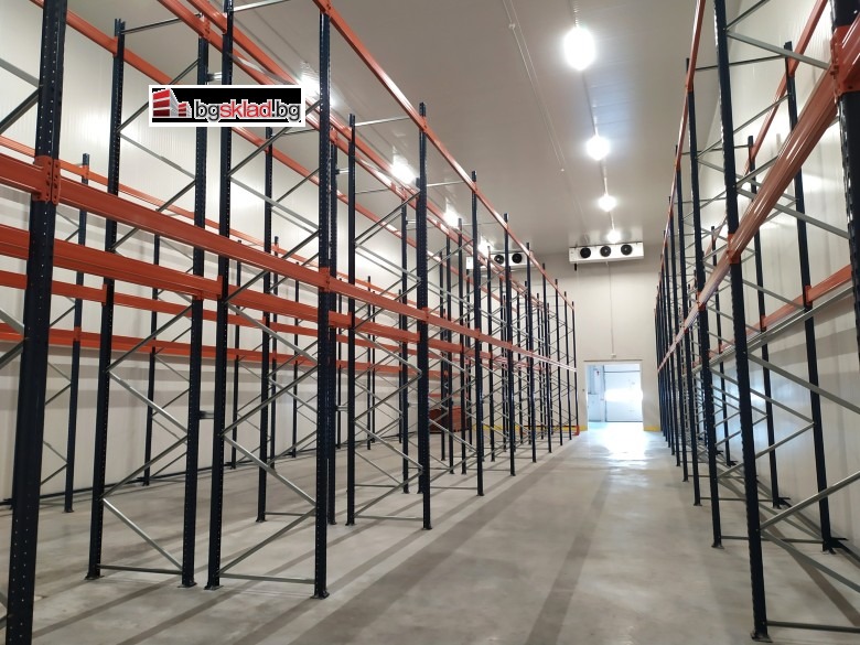 - Хладилна камера от 384 м2 висока 8.40 м2 за съхранение при плюсови температури, изцяло оборудвана със стелажна система за 512 европалета.