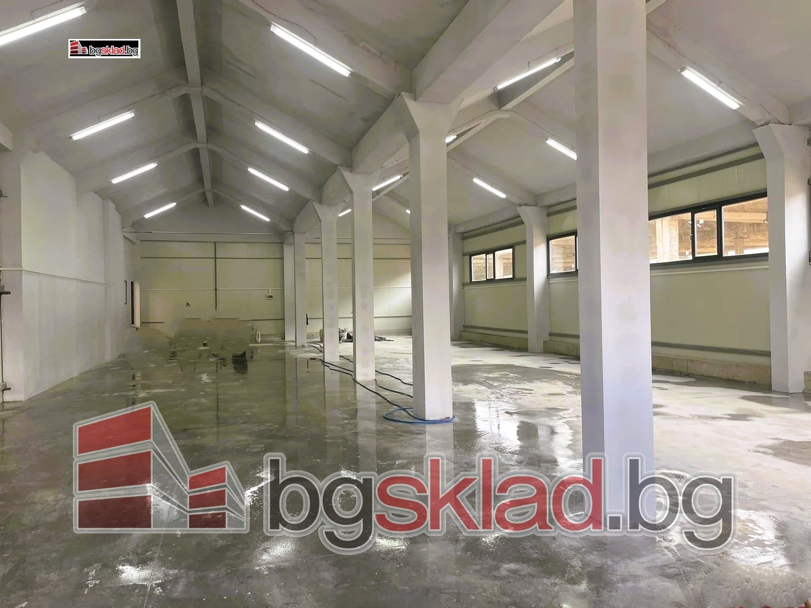 Състояние на сградата: Отлично състояние, термопанели, шлайфан бетон, помещение с кухня и съблекалня, офис в склада, ток, вода, WC.