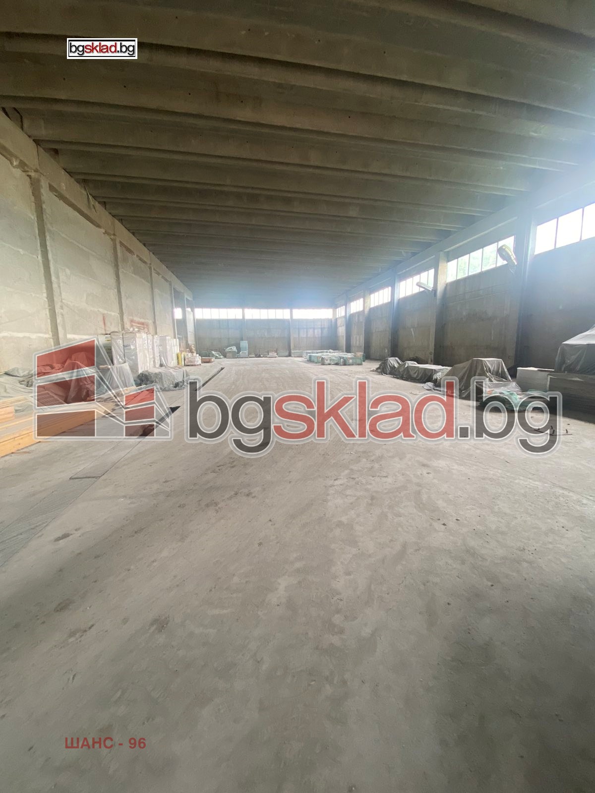 Описание: Склад/промишлено помещение с площ 876 кв.м с работна височина 8 м. Стени и таван стоманобетон, под шлайфан бетон. Достъп на кота 0 с метална врата.