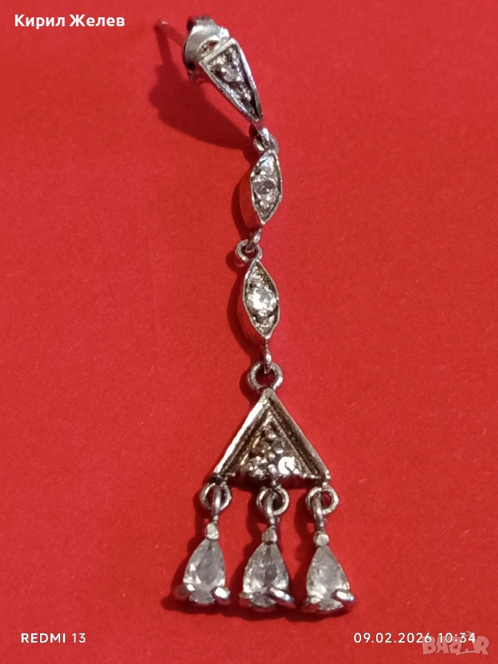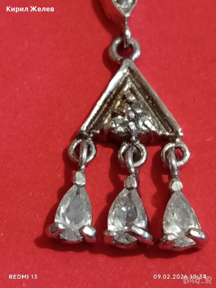 Винтидж сребърна обеца с инкрустирани кристали стил Арт Деко прекрасна 53341