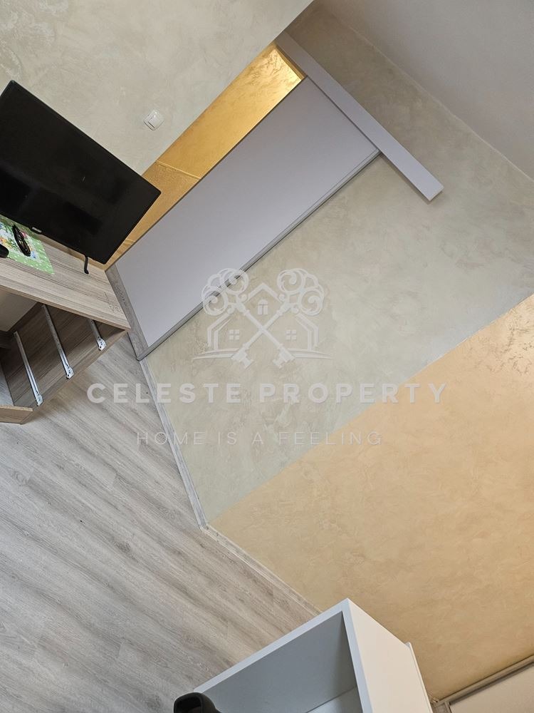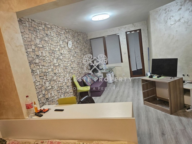 Апартаментът разполага с просторна дневна зона с обособен кът за спане, кухненска част, антре и баня с тоалетна. Жилището е в много добро състояние, с модерни настилки, приятна визия и добра осветеност. Отоплението е решено ефективно и осигурява комфорт през всички сезони.