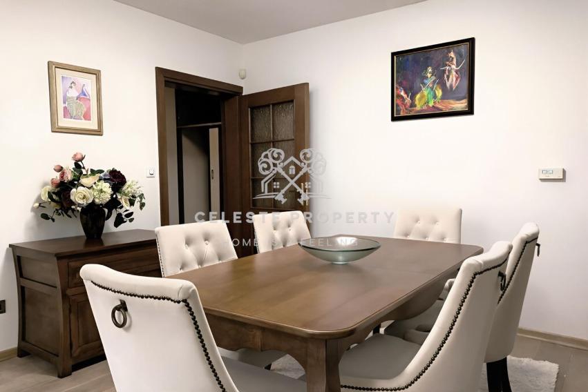 Апартаментът е с площ от 140 кв.м. и е разположен на втори етаж от шестетажна сграда с асансьор. Отличава се с много естествена светлина и усещане за простор. Отоплението е посредством електрически котел, а за допълнителен комфорт са осигурени климатик и телевизор. Локацията е изключително комуникативна в близост до спирки на градски транспорт, паркове, училище, детска градина, заведения и разнообразни търговски обекти.