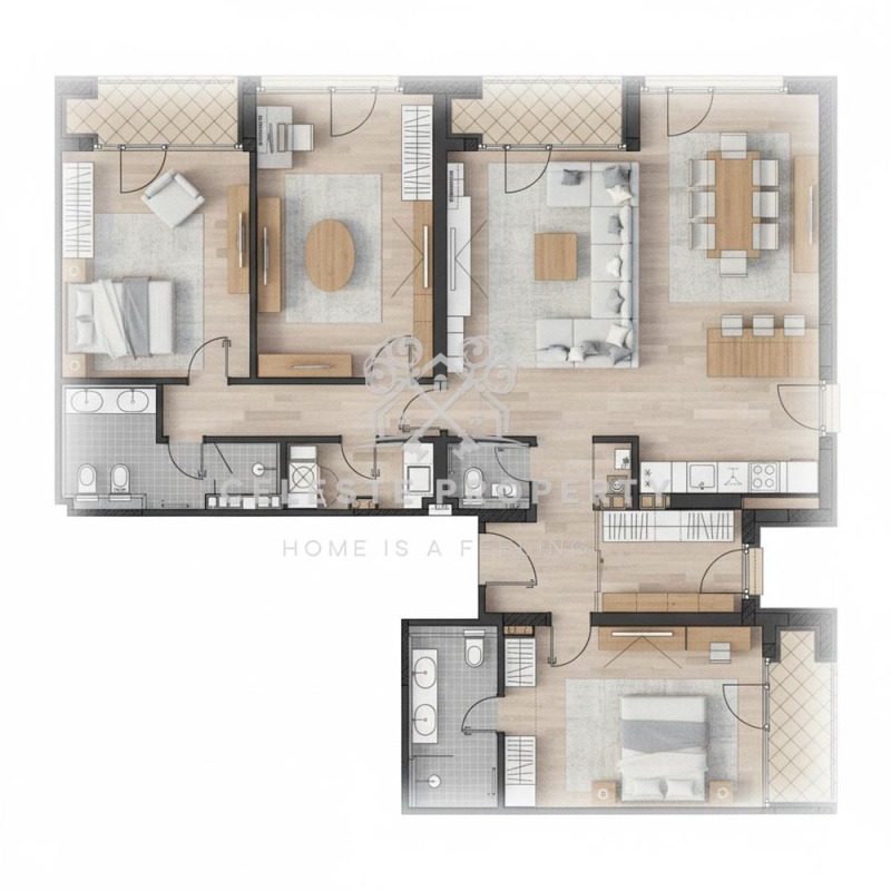 Жилището впечатлява с висок клас строителство, изчистена архитектура и умно планирани пространства. Тук комфортът е на следващо ниво благодарение на интегрираната Smart Home Ready система, която ви позволява да управлявате дома си директно от телефона: отключване и заключване на входната врата, регулиране на температурата, активиране на алармата и пълен контрол над сигурността без значение къде се намирате. Забравяте за неприятното прибиране в студено жилище през зимата или прегрято през лятото домът винаги ви очаква в оптималния климат.