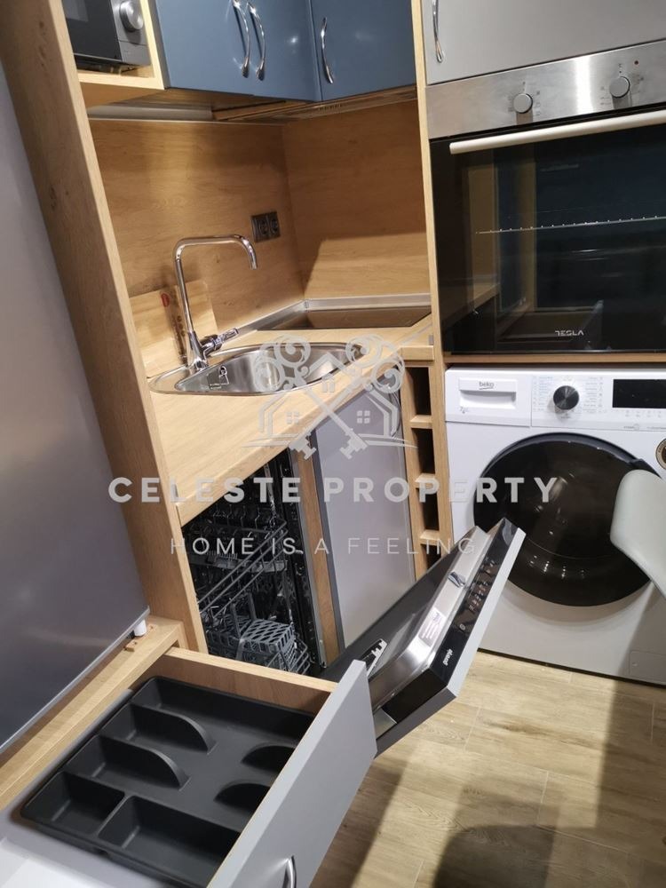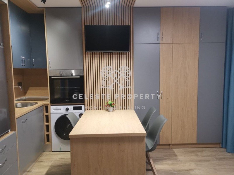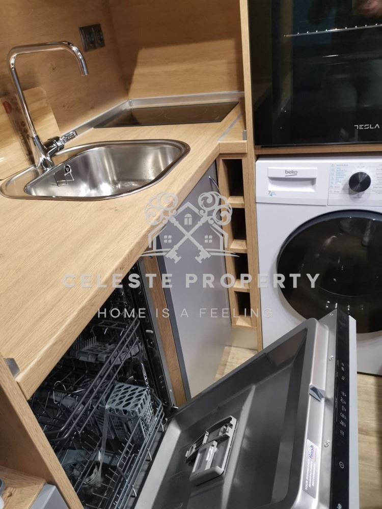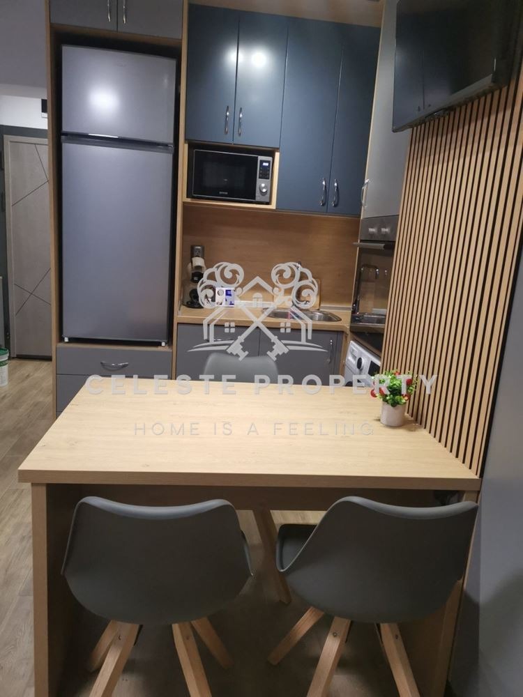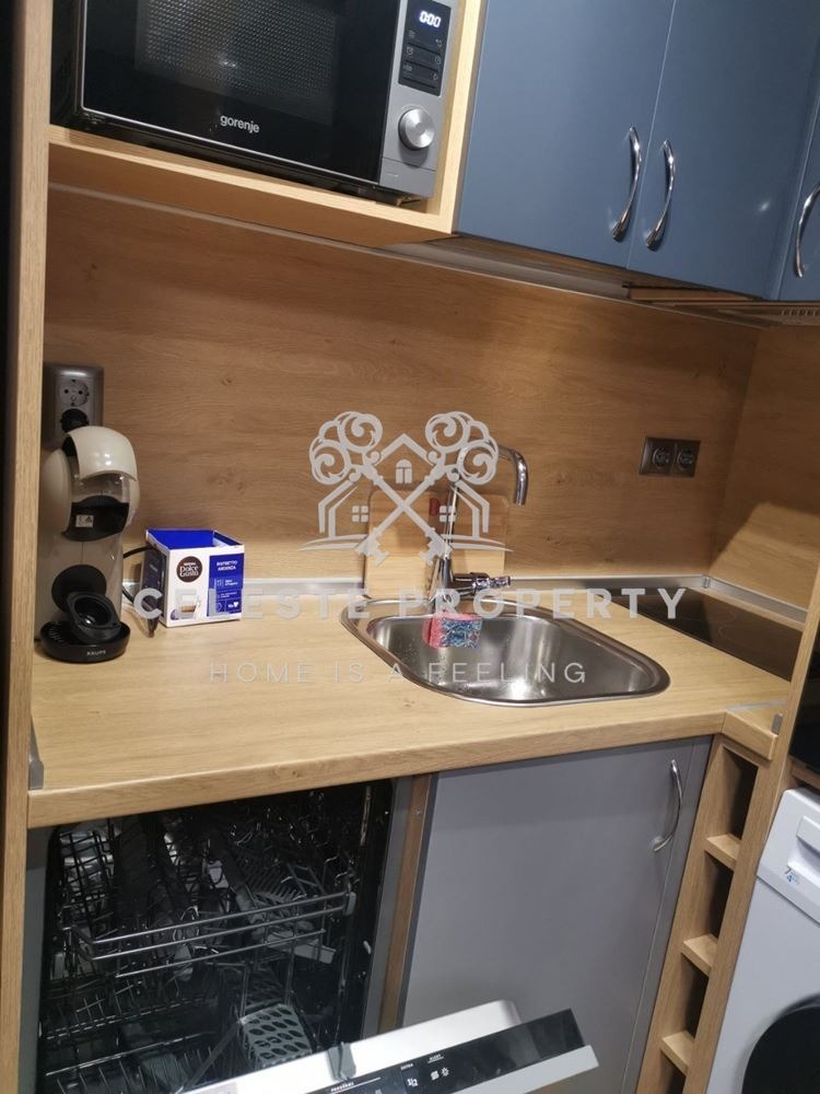 Жилището е с площ от 30 кв.м. и е изключително подходящо за сам човек или двойка. Обзаведено е с вкус и внимание към детайла разполага с удобна спалня с луксозен матрак от мемори пяна, голям гардероб, както и функционален кухненски кът с много шкафове. Вградени са хладилник с фризер, съдомиялна, пералня със сушилня, фурна, керамични котлони, абсорбатор и смарт телевизор. Банята е луксозно завършена, с бойлер.