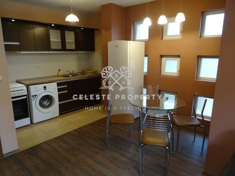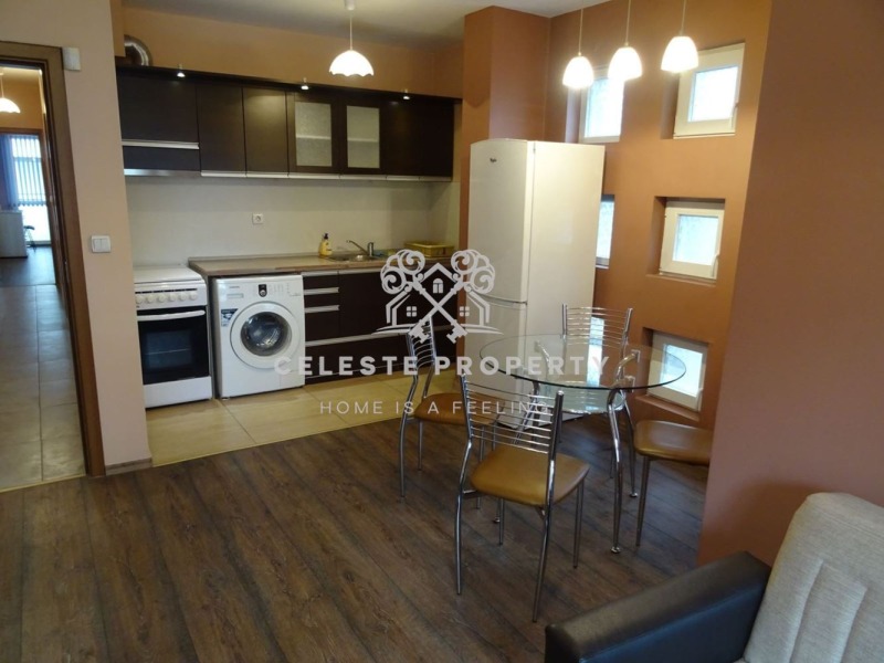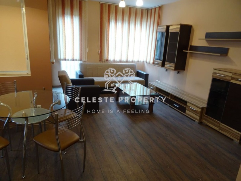 Жилището разполага с функционално разпределение: две самостоятелни спални, обширен хол, отделна кухня, две тераси, баня и отделна тоалетна. Апартаментът е светъл, уютен и предлага комфортни условия за дългосрочно наемане. Отоплението е решено с климатици или конвектори, според предпочитанието на наемателя.