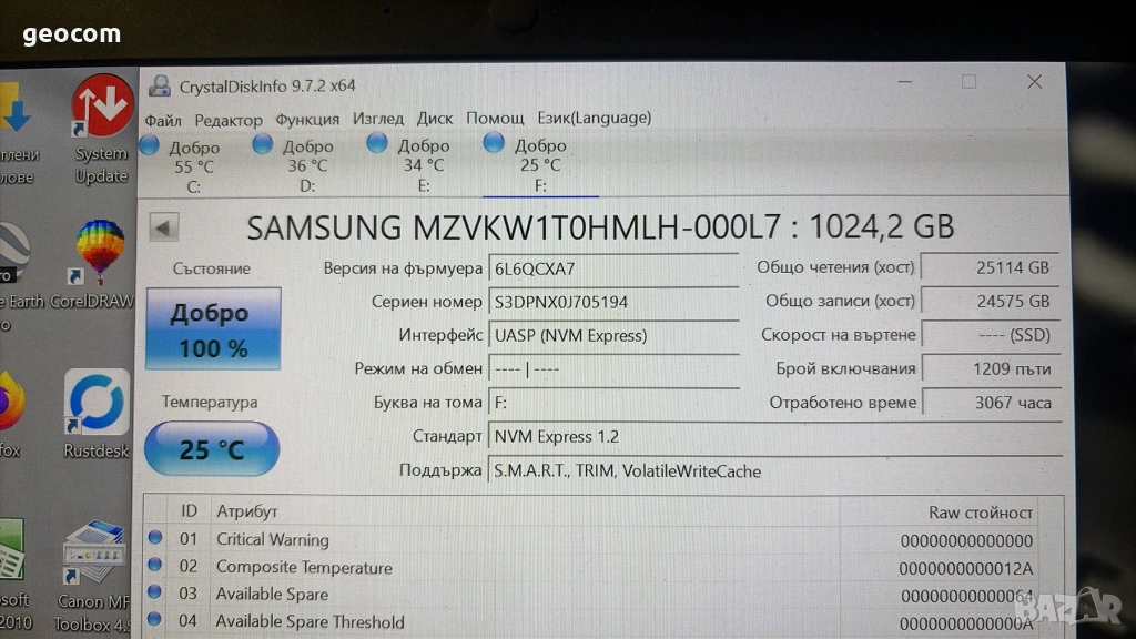 Kaпацитет: 1024GB.