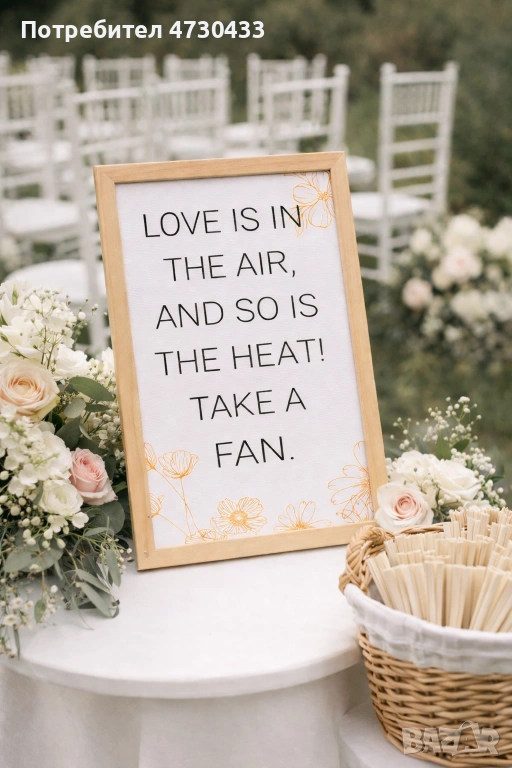 Дигитален файл за принтиране със забавен и практичен надпис, подходящ за събития на открито. Табелката е идеална за поставяне до кошница с ветрила, за да напомни на гостите да се разхладят в топлото време, като същевременно допринася за цялостната атмосфера на събитието.