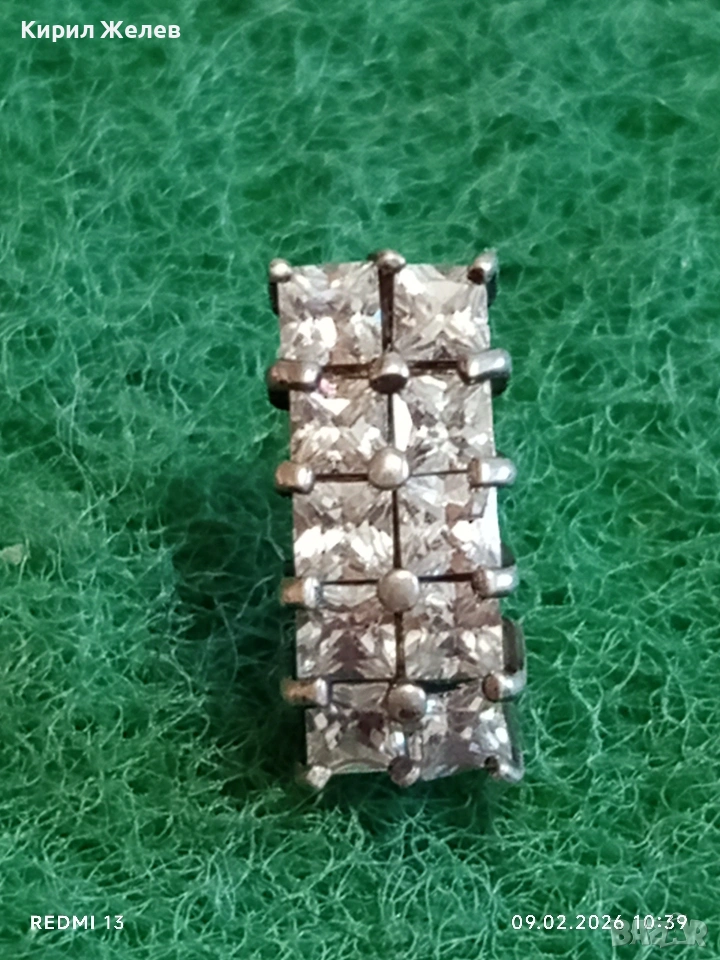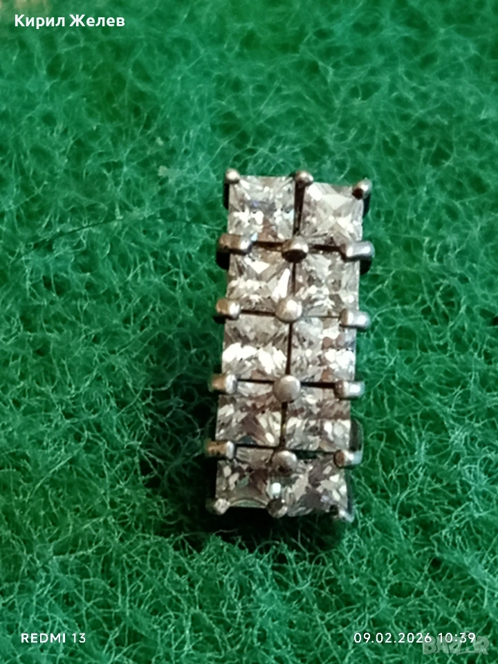 Сребърна обеца с юврлирно фасетирани кристали майстоска изработка 53688