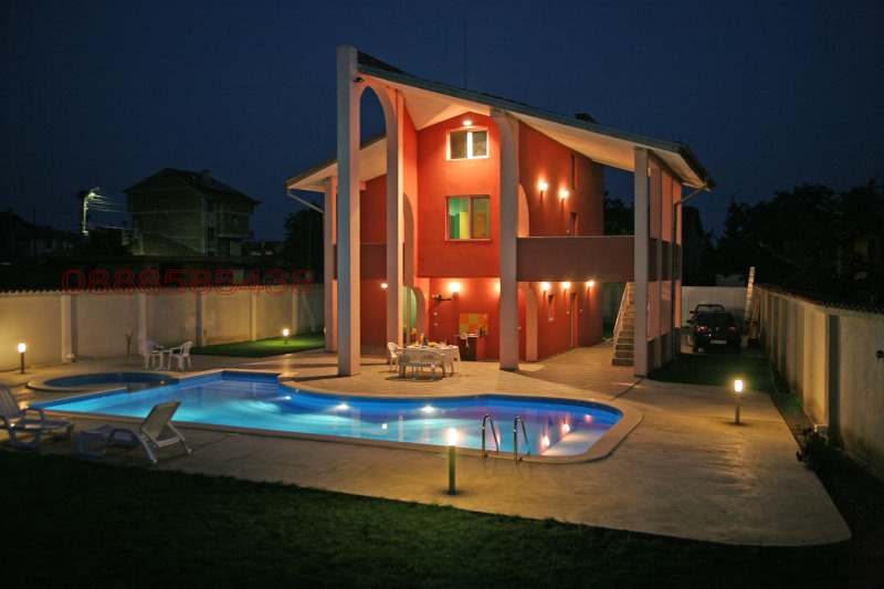 Изградена подземна автоматична поливна система за тревните площи. Изградена автоматична система с капково напояване за зеленчуците от намиращия се в двора собствен водоизточник. Масивна двуметрова ограда, осигуряваща спокойствие и уединение. Къщата се състои 2 жилищни етажа и един тавански (скосен). Първият етаж включва просторна дневна с трапезария, спалня, кухня и баня с тоалетна. Вторият етаж се състои от 3 спални с баня и тоалетна. Двата етажа имат самостоятелни входове и външно свързващо ги стълбище. Голяма функционална веранда на първи етаж с кът за хранене на открито и ратанов сет за кафе и шезлонги край басейна. Вторият етаж също разполага с голяма веранда и 1 тераса.