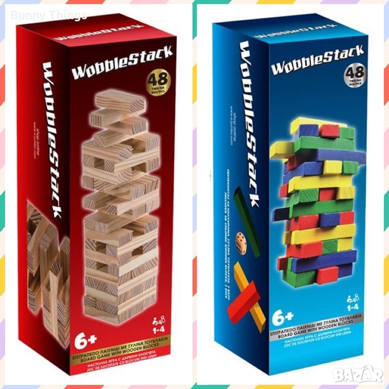 2. Настолна игра Tumblin Tower с цветни тухлички – 48 части