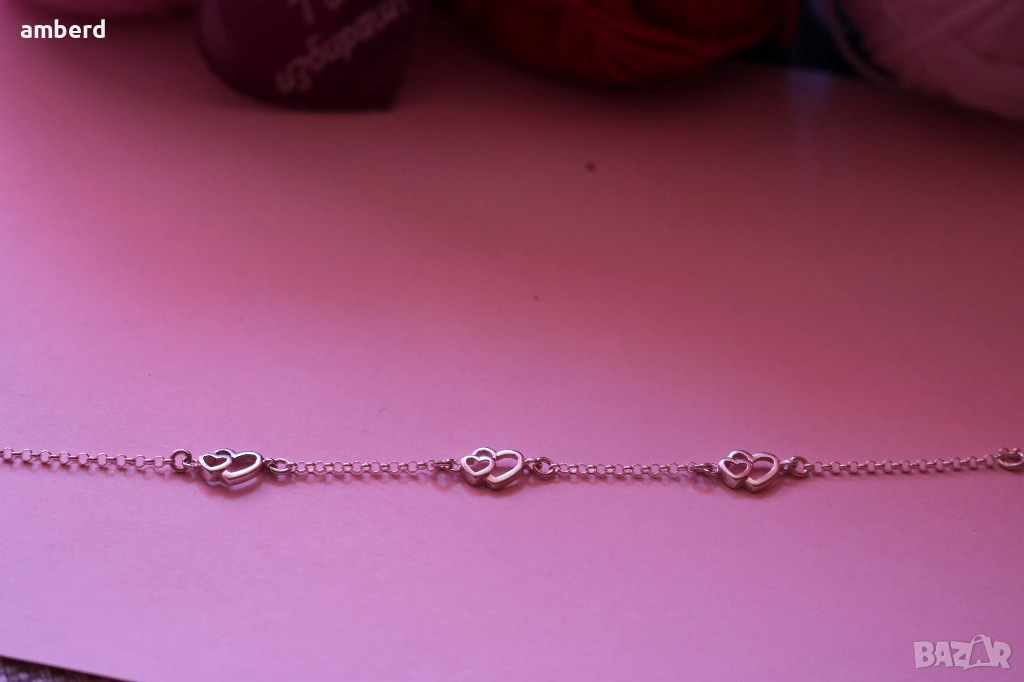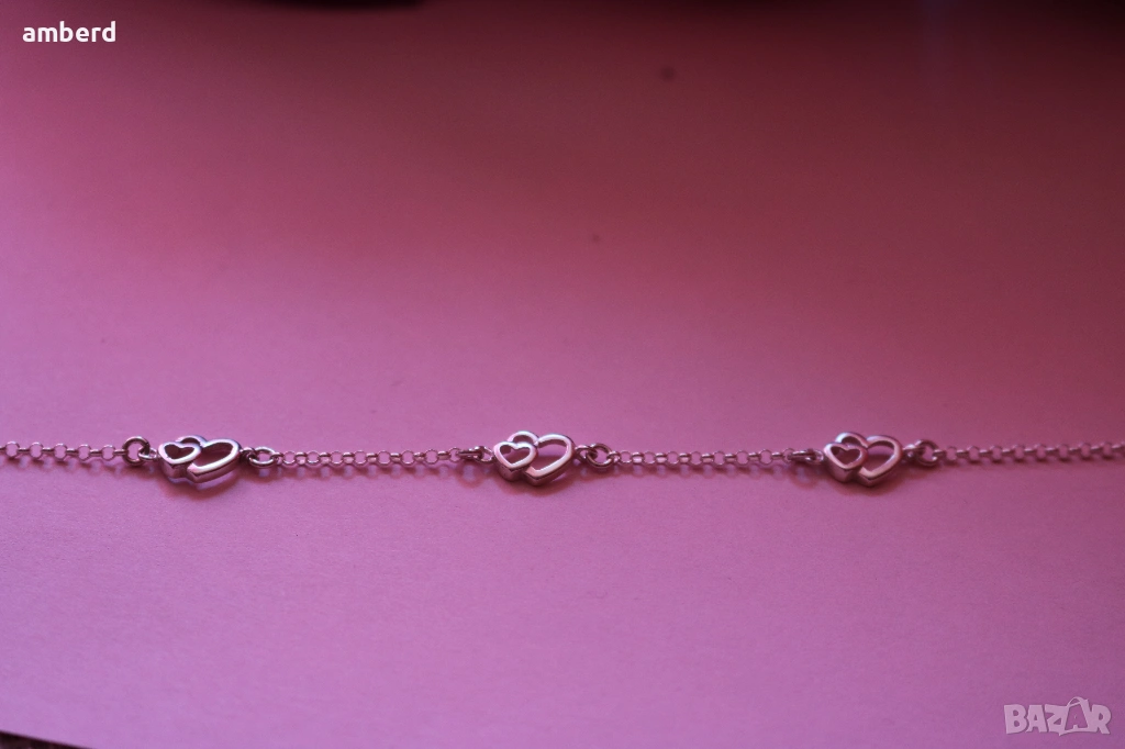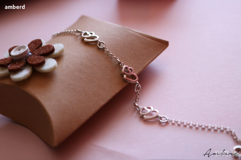 Нежна сребърна гривна със сърчица