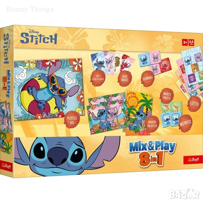 Комплект настолни игри Lilo & Stitch – мемо, пъзел и домино 8 в 1 → Обява 53411241