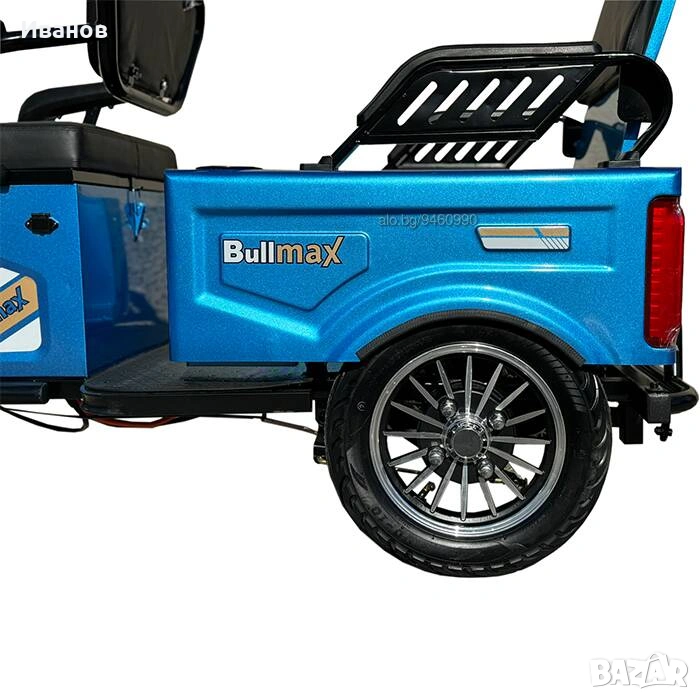 Предлагаме на Вашето внимание електрическа триколка FullMax A10 Cargo. Моделът е изключително атрактивен и подходящ за разходка на един или двама пътници. Задната седалка с едно движение се повдига и задната част се превръща в място за товар. Страничната част на задното отделение е със врата, което допълнително допринася за удобното пренасяне на товари. Последен модел на такъв тип триколки - нищо общо с предлаганите подобни на пазара. Изключително функционални, както за града, така и за по-малките населени места.