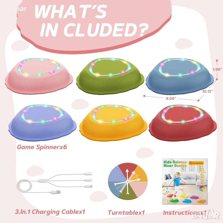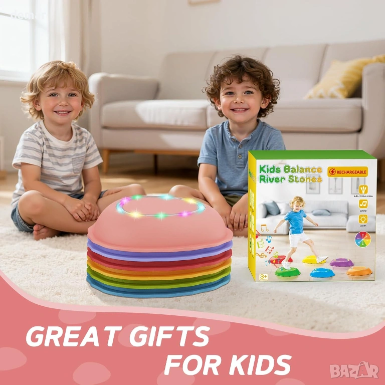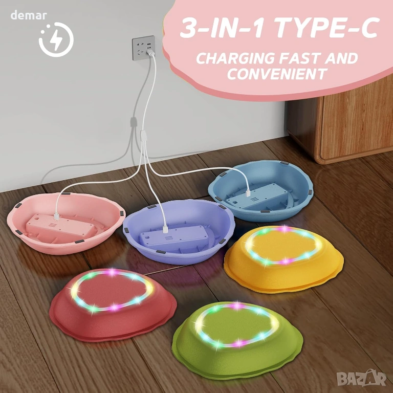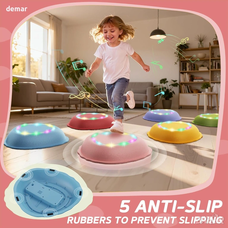 Тези детски стъпала подпомагат баланса, координацията и развитието на грубата моторика чрез активна игра, помагайки на децата да изградят увереност, докато се справят с препятствия на закрито или на открито. Изработени от издръжлива, екологична пластмаса с текстурирани повърхности и противоплъзгащи основи, те осигуряват безопасно и стабилно игрово изживяване, като същевременно издържат до 100 кг. Ярките цветове, тактилните повърхности и множеството режими на осветление и музика насърчават сензорното изследване, разпознаването на цветовете и фокуса. Леки, подреждащи се и лесни за съхранение или носене, те са подходящи за употреба у дома, в градината или в класната стая и са подходящи като практични образователни подаръци за малки деца.