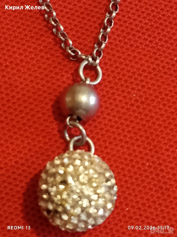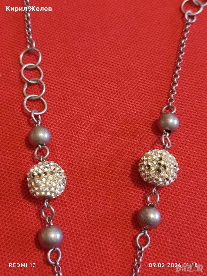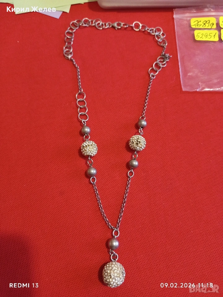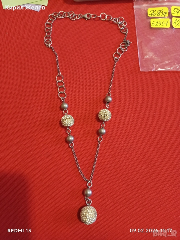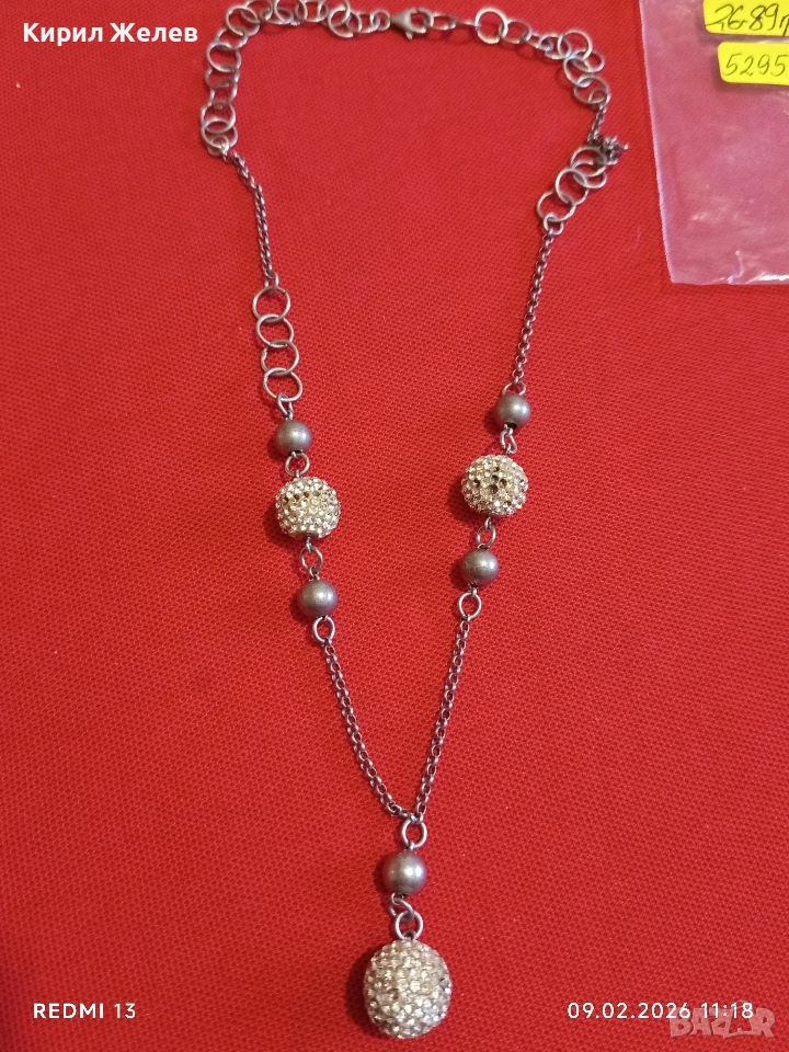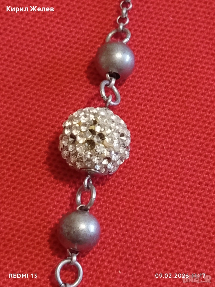 Елегантно сребърно колие с кристални топчета винтидж стил майсторска изработка 52951