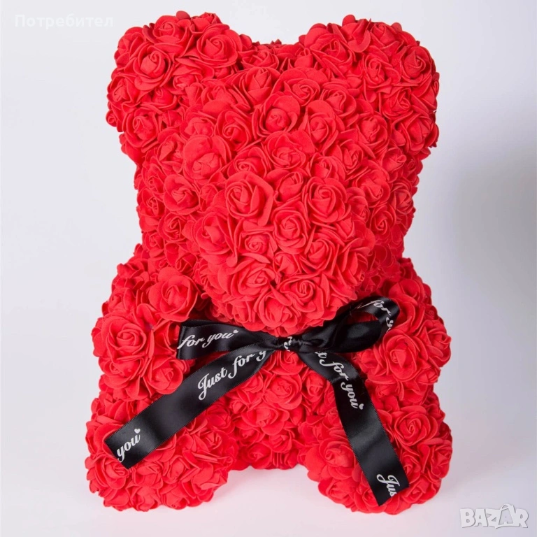 ? Червено мече от рози - перфектният подарък за Свети Валентин! ?? Изработено от нежни и реалистични рози, това мече не само ще подари уют и нежност, но и ще остави трайно впечатление.