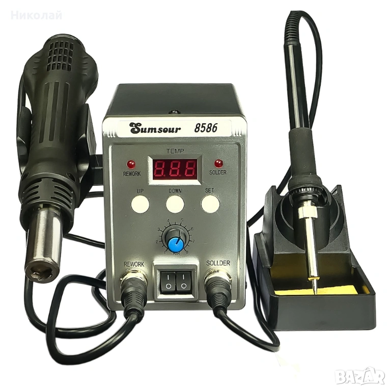 Станция за запояване Sumsour 8586 горещ въздух, поялник, дигитален дисплей.