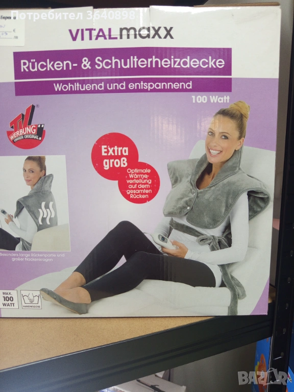 Нова Електрическа подложка за гръб VitalMaxx. Много мека материя, затопля раменете и гърба. Има 3 степени на работа.