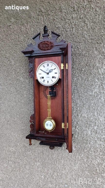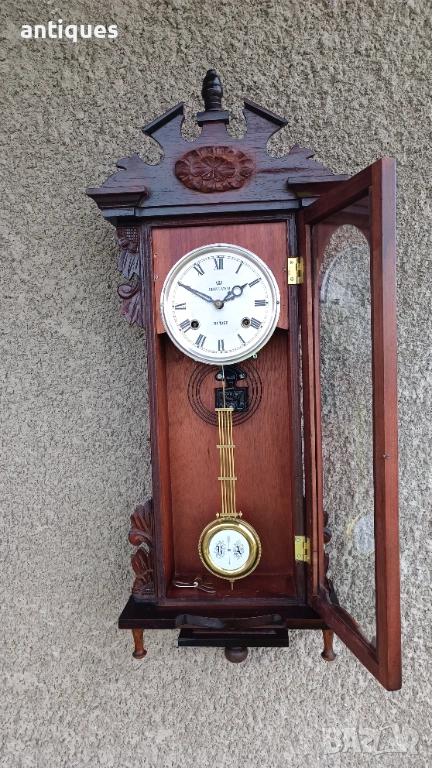 Часовника е много красив страхотна придобивка за ценители. Изработван за немският пазар. С едно навиване трябва да работи 31 дена. Много рядък и красив модел!