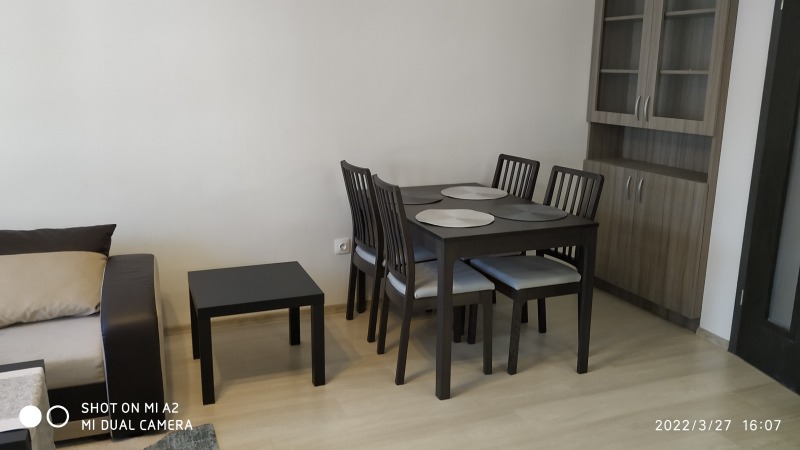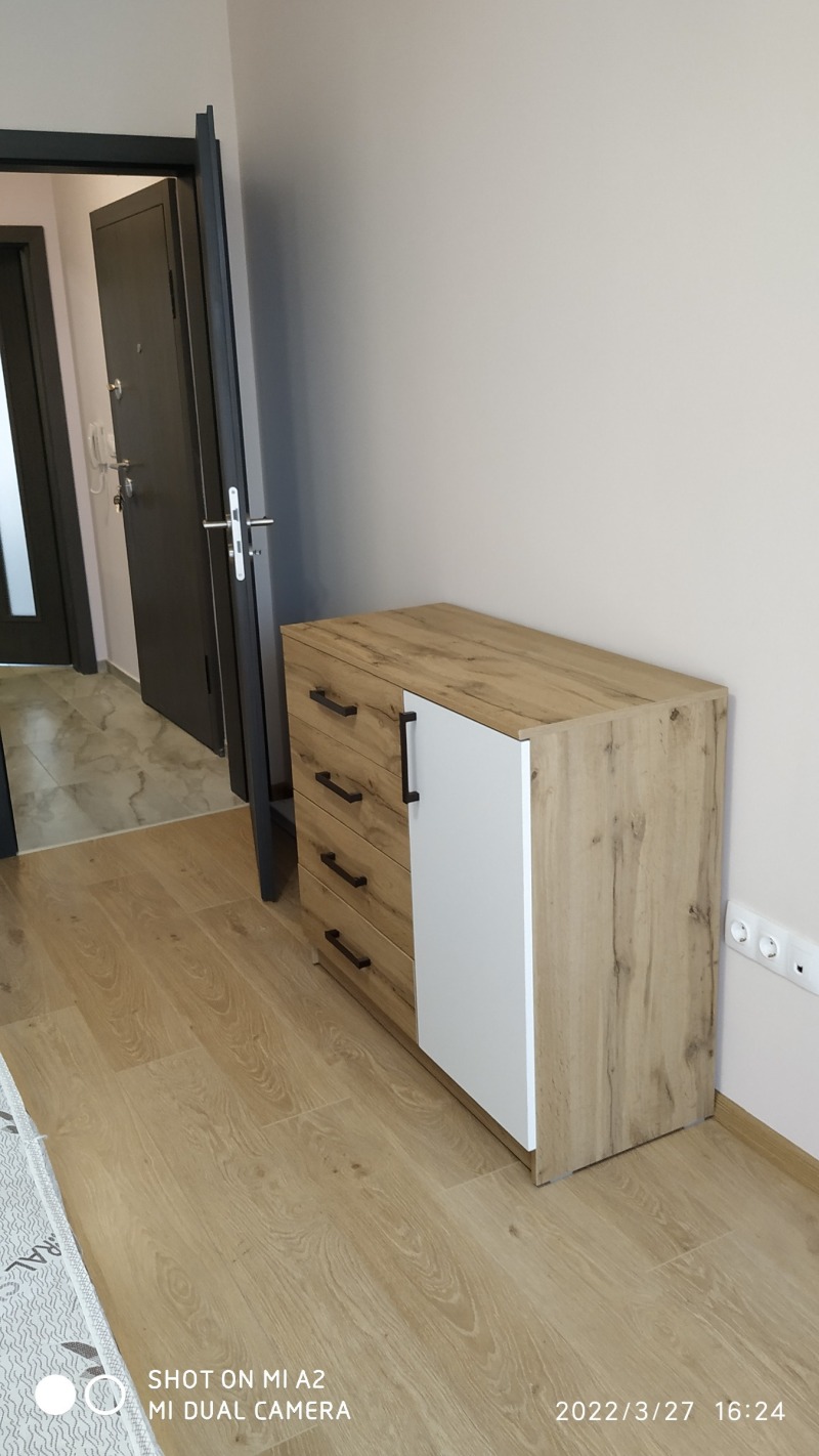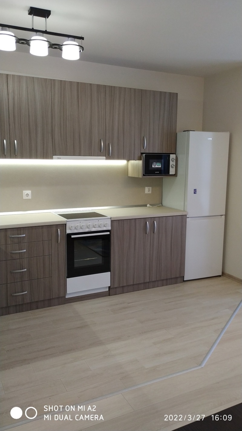 Нов 2-стаен апартамент на пробива на бул.К.Величков и бул.Цар Борис III, на ул.Гюешево, в квартал от нови сгради, сторителство от 2021г., с ново обзавеждане. Напълно завършен: настилки гранитогрес в общите части и баня, ламиниран паркет в хол и спалня; стени шпакловка и латекс; нова вградена кухня с бялата техника; баня с тоалетна на гранитогрес/фаянс/ свободностоящ душ. Отопление на ТЕЦ, а също и за охлаждане климатик в дневната част. Има следното разпределение: входно антре-портманто, дневна- ъглов диван холна масичса, TV-шкаф; трапезарна част- маса за хранене с 4 стола, помощна масичка и шкаф за посуда; спалня - спалня комплект с 4-крилен гардероб, нощни шкафчета, комод. Навсякъде стилни осветителни тела, килим, завеси на прозорците. Дава се дългосрочно. Възможно паркиране около сградите. Контролиран достъп в сградата с чип и портална врата. Поддържани общи части, с асансьор. Дава се на хора без домашни любимци. Бързи огледи, с ключ. Изисква се една предплата и един депозит. За връзка тел. 0899859645 З. Астаджова