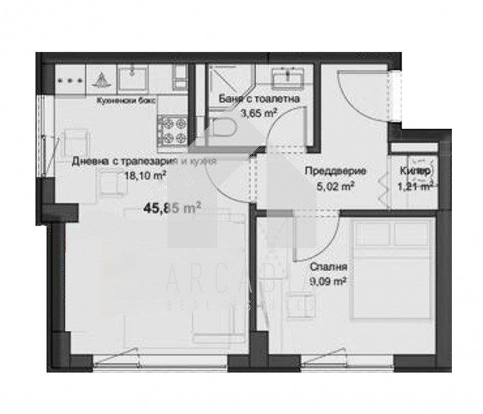Стаите са функционално разпределени по следния начин - слънчева дневна с кухненски бокс, спалня, входно антре, баня с тоалетна,килер.