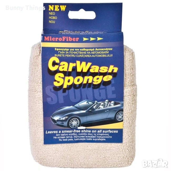 Гъба за почистване на автомобил. Не оставя петна и полира всички повърхности. Със специалната микрофибърна технология, за да бъде максимално абсорбираща.