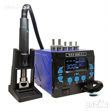 Паяльная станция WEP 993DM-IV — профессиональная паяльная станция с горячим воздухом и цифровым управлением, предназначенная для ремонта электроники, SMD, BGA и мобильных устройств.
