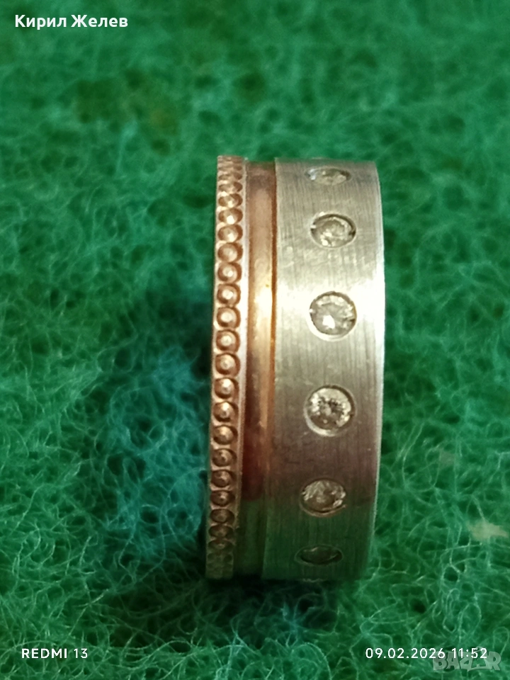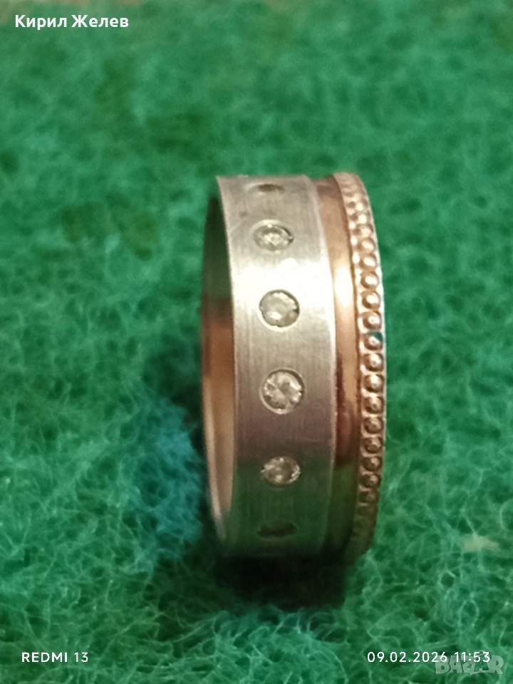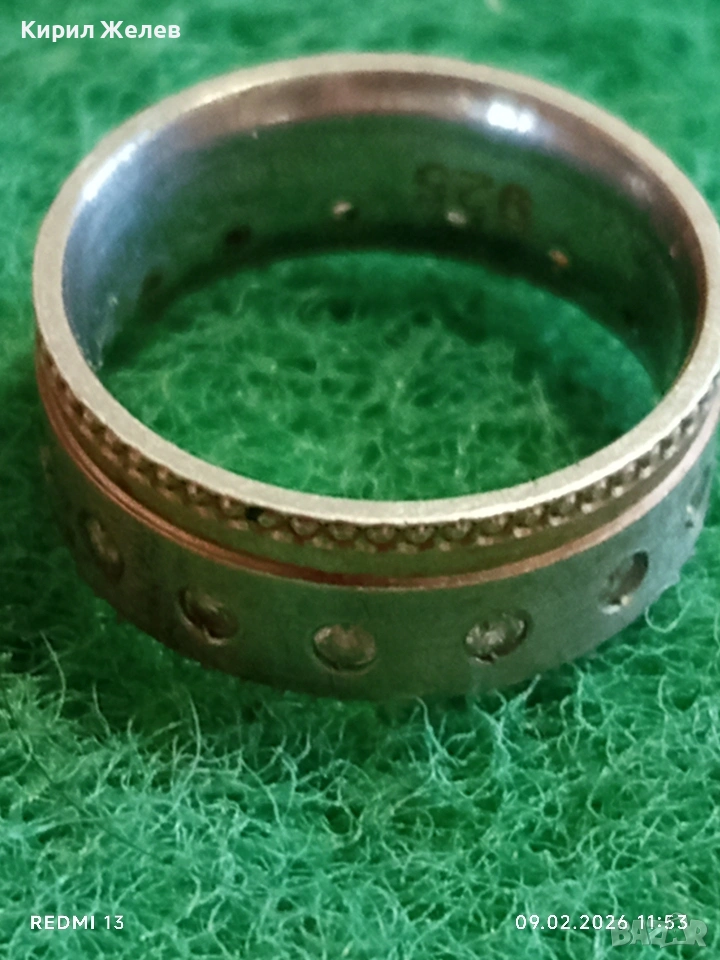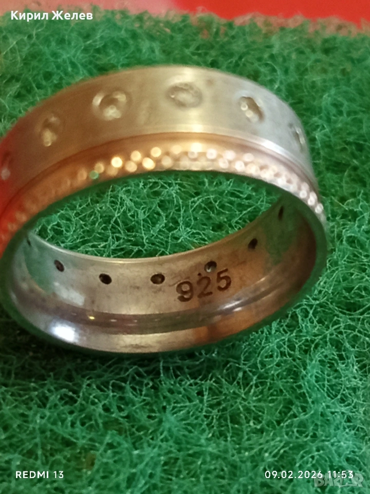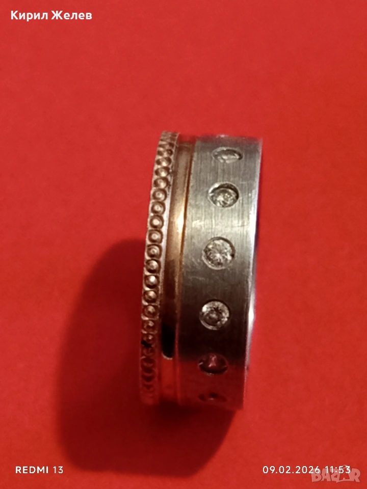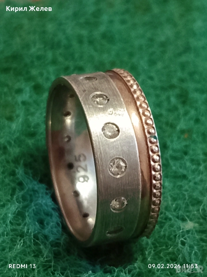 Авторски сребърен пръстен с вградени диаманти уникално красив 25180