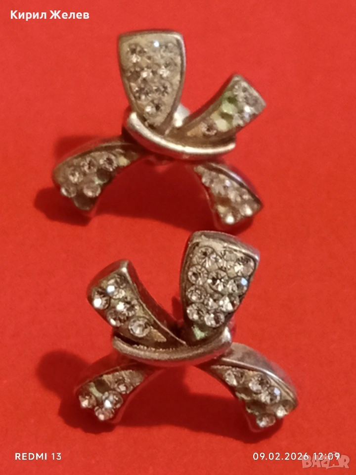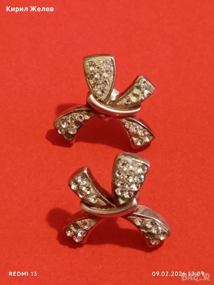 Сребърни обеци във формата на ПАНДЕЛКА 🎀 с инкрустирани кристали стил и елегантност 53686