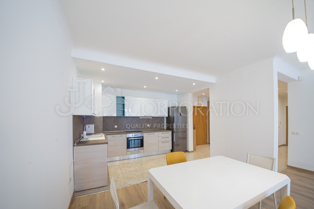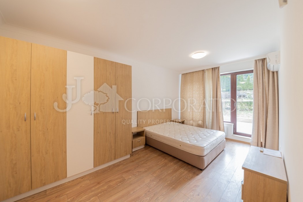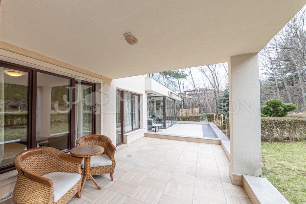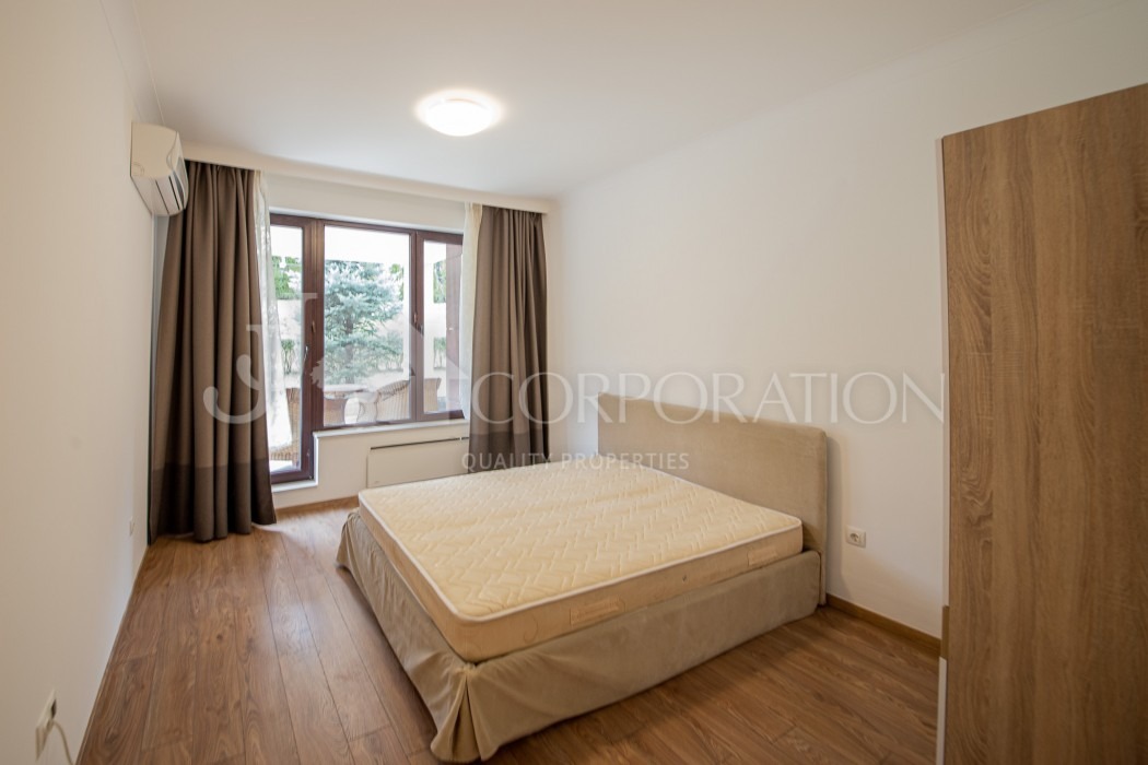 ВЕЛИКОЛЕПЕН АПАРТАМЕНТ! ЗАТВОРЕН КОМПЛЕКС! ДИРЕКТЕН ИЗЛАЗ КЪМ ДВОР! Предлагаме на Вашето внимание напълно обзаведен тристаен апартамент, находящ се в бутиков затворен комплекс с контролиран достъп, видеонаблюдение, детска площадка, паркинг, басейн и зелени площи. Районът е изключително тих и спокоен, същевременно в непосредствена близост до ул. Кумата, отлична инфраструктура. Комплексът се отличава с невероятната си атмосфера, прекрасно озеленяване и чист въздух. Предназначен е за хора обичащи лукса и модерния начин на живот, близо до природата и с чудесен изглед към планината и столицата. Жилището е обзаведено с всичко необходимо и се състои от: входно антре с вграден гардероб, дневна с кухненски бокс, прекрасна тераса с излаз към двор, две самостоятелни спални, едната , от които със самостоятелна баня с тоалетна, още една баня с тоалетна с мокро помещение. Отоплението е на климатици. В ОБЯВЕНАТА ЦЕНА Е ВКЛЮЧЕНО ПОДЗЕМНО ПАРКОМЯСТО, ТАКСА ПОДДРЪЖКА КЪМ КОМПЛЕКСА И ДДС! Удобно е да се обаждате по всяко време! Работим с колеги по всички наши оферти! Водещ брокер: Николай Николов - 0887714407. Оферта номер:0343.