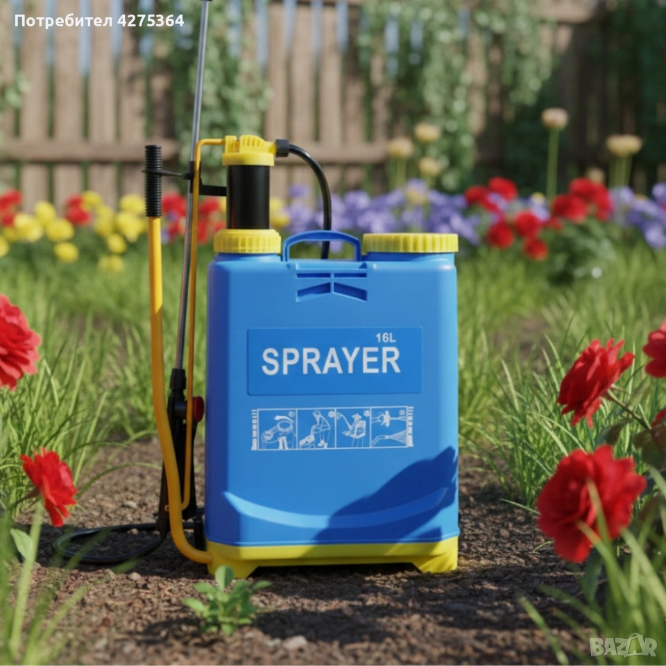 Ръчна градинска пръскачка 16 л — удобно и мощно пръскане с 4 бара → Обява 53412117