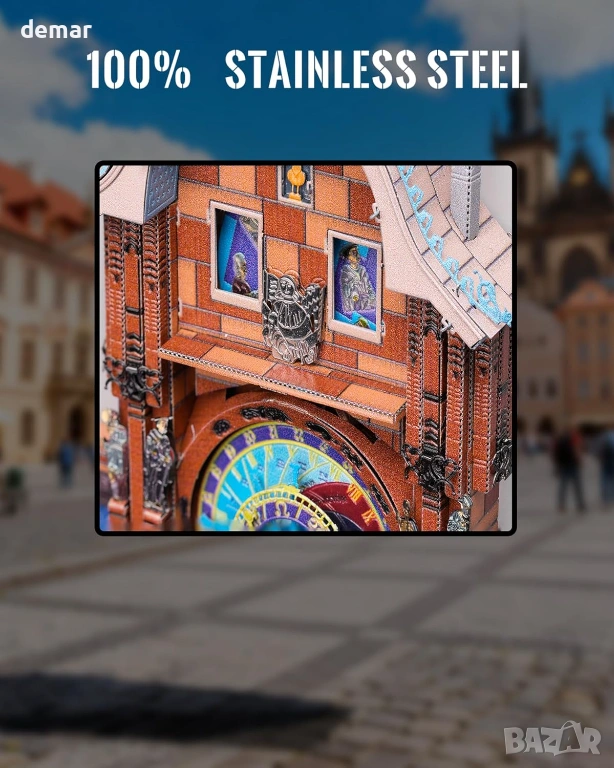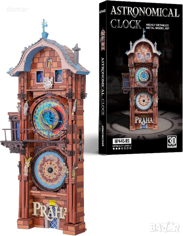 Метален 3D пъзел Piececool - Пражкият астрономически часовник, модел за сглобяване, 117 части