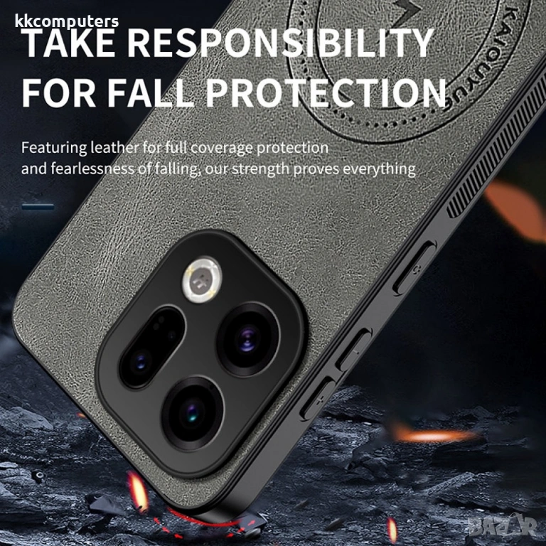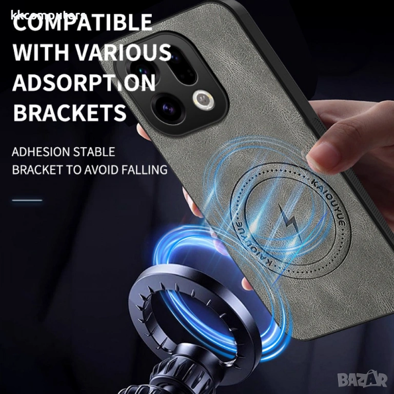 Сигурна магнитна връзка за удобство: Вграденият силен магнитен пръстен позволява лесно и стабилно закачане на телефона към магнитни автомобилни стативи/стойки, зарядни устройства и други аксесоари, без да се налага да сваляте калъфа.