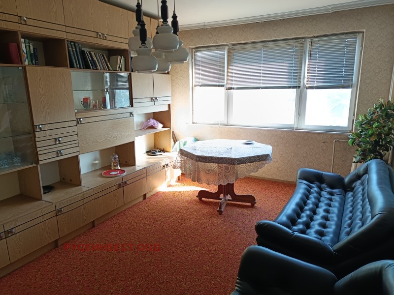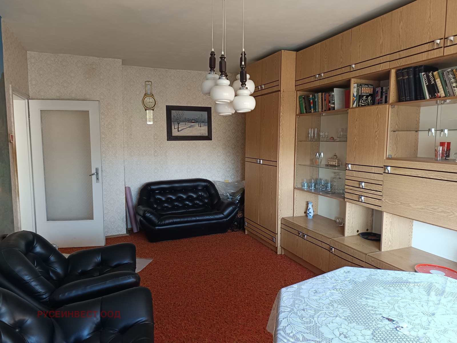 Просторен тристаен апартамен с хубави големи стаи. Намира се на пети етаж в жилищен блок монолитно строителство с газ във входа. Мястото е озеленено, с достатъчно места за паркиране. В близост е до спирки, училища, детски градини, кооперативен пазар и идеалния център на града. Жилището е много топло и с чудесно разпределение. Дневната зона се състои от самостоятелни кухня и хол, а зоната на сън е отделена и се състои от две просторни спални. Двете спални и кухнята са с тераси. Имота е удобен както за отдаване под наем така и за живеене. Ключ. Огледи по всяко време. Русеинвест 0895631616