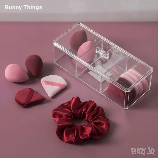 Комплект за красота със scrunchie и гъби за грим, прозрачна кутия с капак 22.5x9.5x7cm- Нова, снимка 1 - Други - 53412315 Комплект за красота със scrunchie и гъби за грим, прозрачна кутия с капак 22.5x9.5x7cm- Нова, снимка 2 - Други - 53412315 Комплект за красота със scrunchie и гъби за грим, прозрачна кутия с капак 22.5x9.5x7cm- Нова, снимка 3 - Други - 53412315 1/3