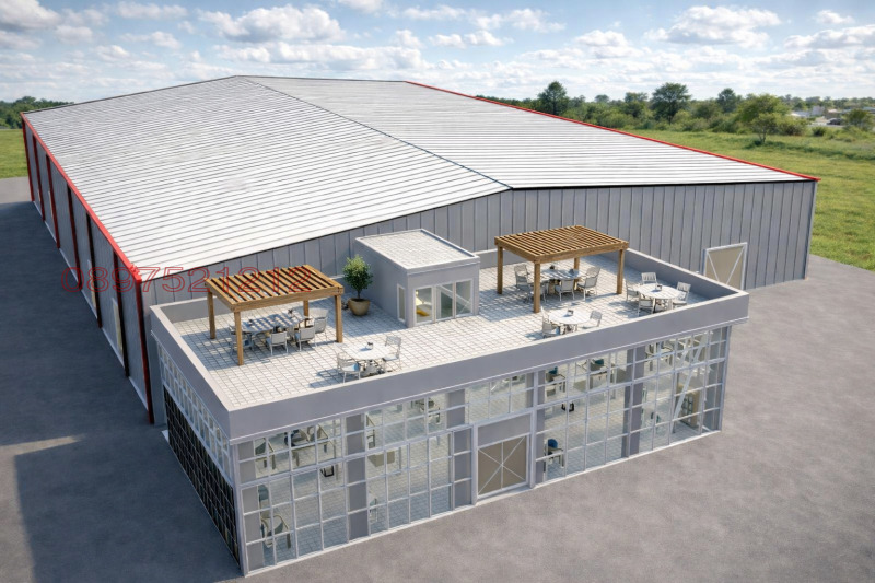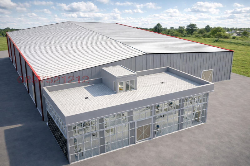 Проекта е на фаза на строеж за складова база и производствени дейности 3200м2 складова площ, общо 9 бр клетки с различна големина между 100 и 400м2, магазин-шоурум или офис сграда в предната част на 2 етаж по 230 м2 на етаж ило общо 460м2! Като по проект е оставен покрив с борд за тераса или опция за надстрояване на още 1 допълнителен етаж!
