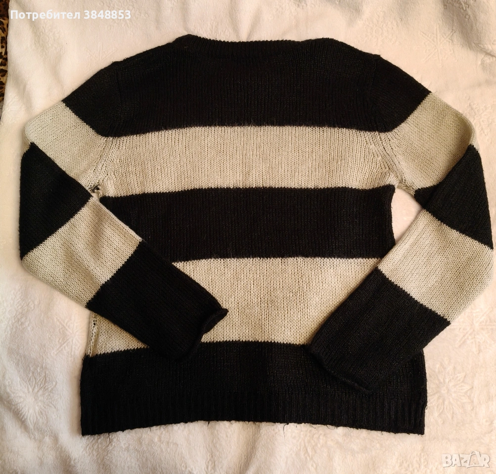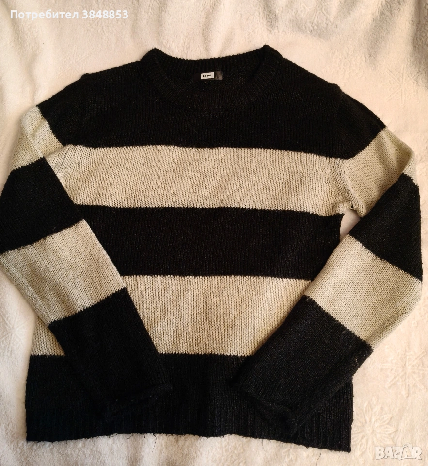 Черно бял раиран пуловер BikBok- oversize. Размер L, но според мен по подходящ за М.