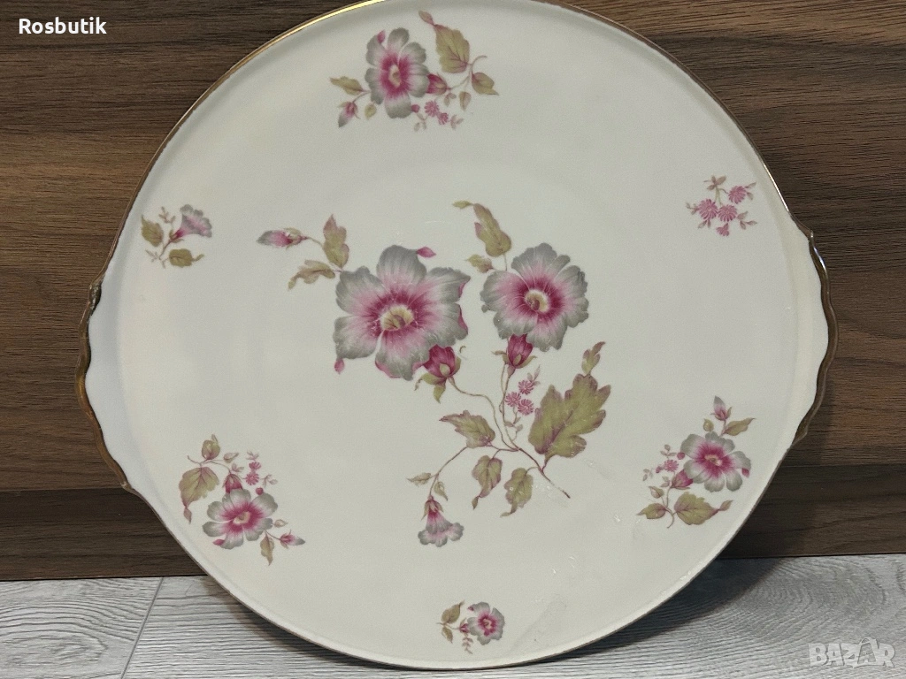 Антикварно порцеланово плато за сервиране/ поднасяне . Размер 30см/33см. Отлично състояние.
