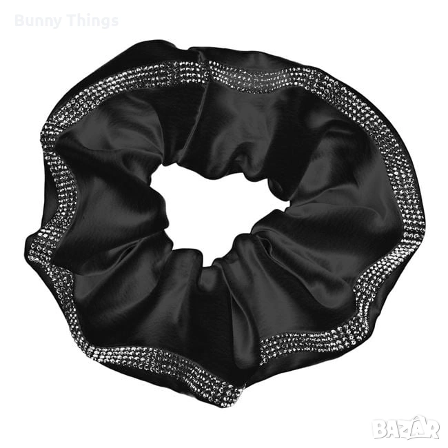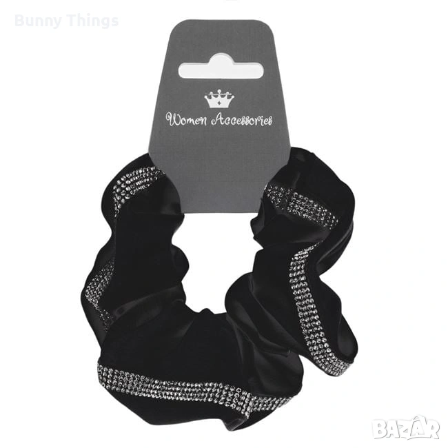 Дамски сатенен ластик за коса, в черен цвят, с камъчета → Обява 53412416